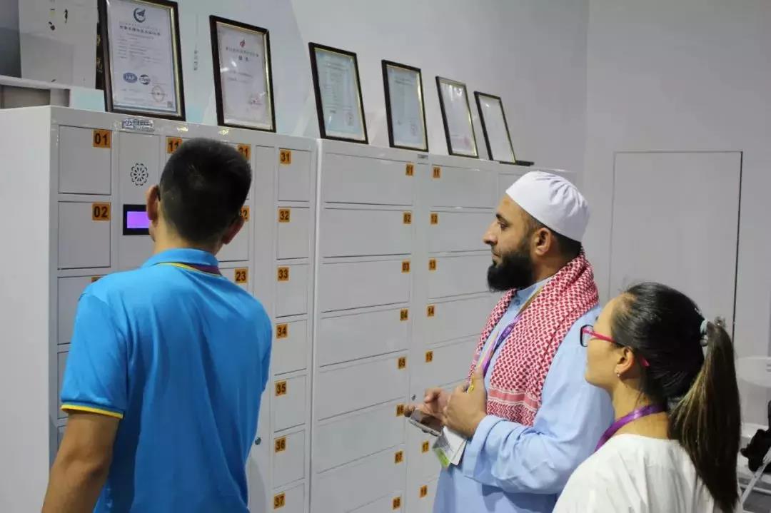 采用人臉識別技術(shù)進行寄存、取物的智能柜,也受到許多參展人員的興趣和圍觀。